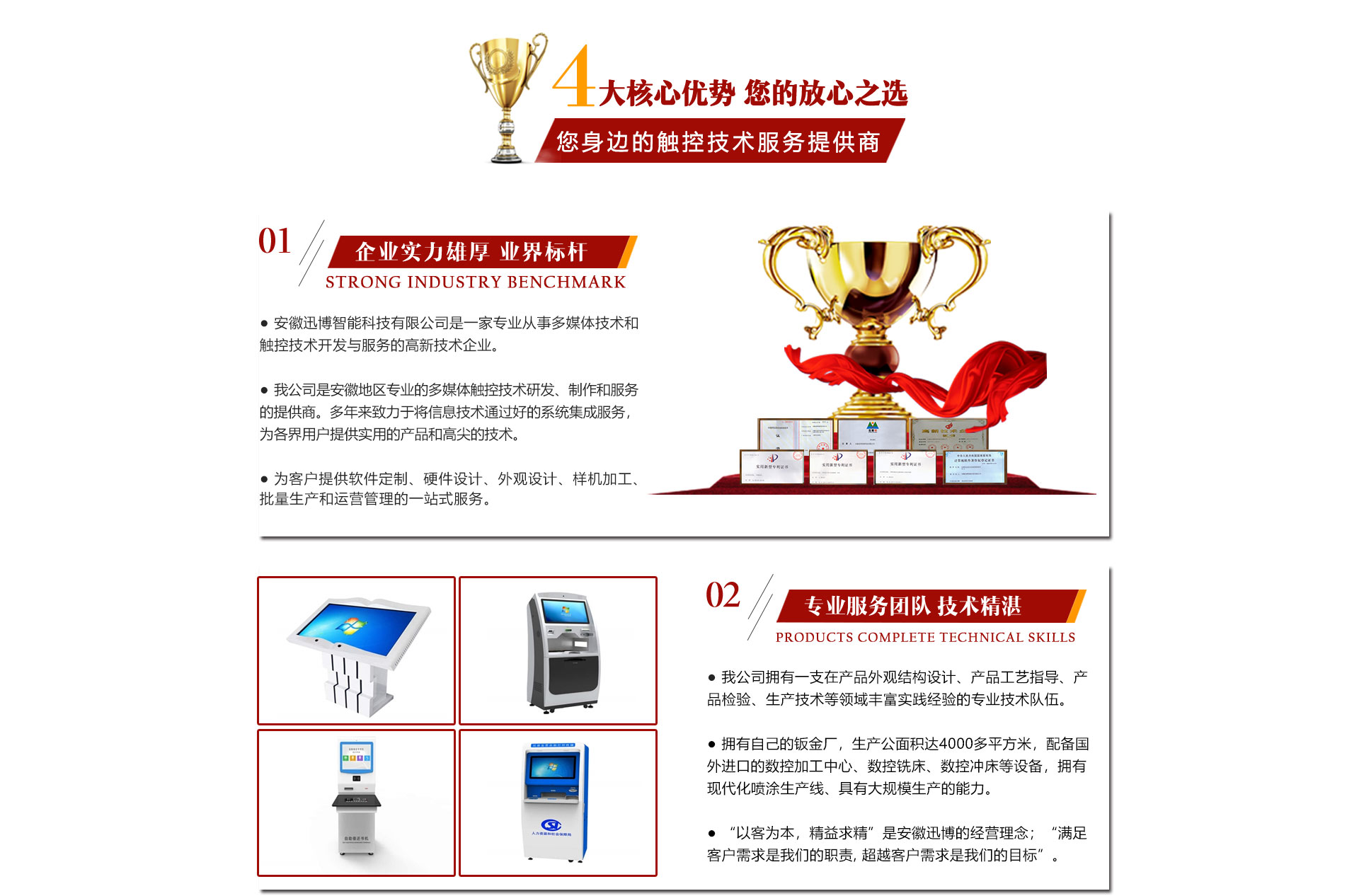 迅博科技 位于中國(guó)科教城---合肥市,地處合肥市肥西縣湯口路與皋城路交口西北角人民萬(wàn)福產(chǎn)業(yè)園一期12棟,是一家計(jì)算機(jī)信息領(lǐng)域的高新技術(shù)企業(yè)公司,全心全意服務(wù)于信息化建設(shè),做信息化提供商,全力打造信息時(shí)代新模式。引進(jìn)了現(xiàn)代企業(yè)管理模式和完善的競(jìng)爭(zhēng)、激勵(lì)機(jī)智,既具備國(guó)有企業(yè)的信譽(yù),又兼?zhèn)渑ζ床⒁恢孪蛏系木瘛Q覆┛萍?擁有多項(xiàng)軟件著作權(quán)證書(shū)和多項(xiàng)硬件技術(shù)證書(shū)同時(shí)也是一家高新技術(shù)企業(yè),注冊(cè)資本達(dá)500萬(wàn),辦公面積近1500平米,同時(shí)有合資在杭州成立自己的4000多平米的鈑金廠,公司擁有一支實(shí)力、富有經(jīng)驗(yàn)的計(jì)算機(jī)和信息技術(shù)隊(duì)伍和市場(chǎng)營(yíng)銷(xiāo)隊(duì)伍,技術(shù)人員都有很強(qiáng)的背景和豐富的實(shí)踐經(jīng)驗(yàn)。一貫注重與...